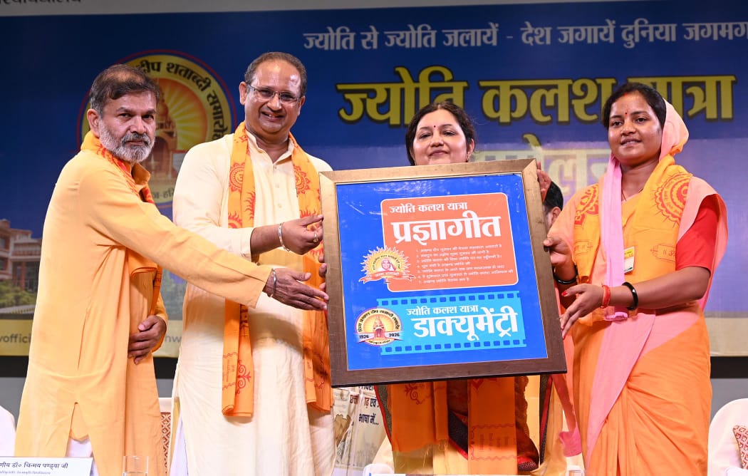 हरिद्वार 23 सितम्बर। गायत्री तीर्थ शांतिकुंज में चल रहे ज्योति कलश यात्रा कार्यशाला के समापन सत्र का शुभारंभ देवसंस्कृति विश्वविद्यालय के प्रतिकुलपति डॉ चिन्मय पण्ड्या, छग की केबीनेट मंत्री श्रीमती लक्ष्मी राजवाड़े व गायत्री विद्यापीठ की व्यवस्था मंडल की प्रमुख श्रीमती शेफाली पण्ड्या ने संयुक्त रूप से दीप प्रज्वलन कर किया। कार्यशाला में छत्तीसगढ के 33 जिले व ओडिशा के 30 जिलों के प्राणवान कार्यकर्त्ता शामिल रहे। कार्यशाला में छत्तीसगढ़ व ओडिशा के प्रत्येक गाँवों में वर्ष 1926 से सतत प्रज्वलित दिव्य अखण्ड ज्योति के प्रकाशपुंज को पहुुंचाने के लिए संकल्पित कराया गया। वहीं इस दौरान सात शक्ति कलश का पूजन किया गया। साथ ही छग व ओडिशा के परिजनों ने गायत्री परिवार प्रमुखद्वय श्रद्धेय डॉ प्रणव पण्ड्या व श्रद्धेया शैलदीदी से भेंटकर मार्गदर्शन व आशीर्वाद लिया। समापन सत्र के मुख्य अतिथि छग की महिला, बाल विकास व समाज कल्याण मंत्री श्रीमती लक्ष्मी राजवाड़े ने कहा कि युगऋषि पूज्य आचार्यश्री के राष्ट्र निर्माण के विचारों को छग के जन जन तक पहुंचाना है। महिलाओं और बच्चों में नैतिकता का विकास होने से ही समाज का कल्याण हो सकता है। केबीनेट मंत्री श्रीमती राजवाड़े ने कहा कि ज्योति कलश यात्रा के माध्यम से समाज के प्रत्येक वर्ग तक सकारात्मक विचारों को पहुंचाना है। उन्होंने कहा कि मेरा परिवार गायत्री परिवार के अनेक सकारात्मक कार्यों से जुड़ा है। पूज्य आचार्यश्री द्वारा रचित युगसाहित्य में विकसित राष्ट्र की परिकल्पना विद्यमान है। केबीनेट मंत्री ने कहा कि वंदनीया माता भगवती देवी शर्मा जी का युग संदेश महिलाओं में नारी सशक्तिकरण का महत्त्वपूर्ण कार्य करेगा। देवसंस्कृति विश्वविद्यालय के प्रतिकुलपति युवा आइकॉन डॉ चिन्मय पण्ड्या ने कहा कि यह समय अकल्पनीय सौभाग्य लेकर आया है। पूरी दुनिया को बदलने का संकल्प लेने वाले युगऋषि वेदमूर्ति पं श्रीराम शर्मा आचार्य की चेतना घनीभूत हो रही है और ऐसे समय में उनके कार्य में सहभागी बनना हमारा परम सौभाग्य है। युवा आइकान ने युगऋषि के व्यक्तित्व एवं कर्तृत्व को याद करते हुए गायत्री परिवार को मत्स्यावतार का प्रत्यक्ष उदाहरण बताया। प्र्रतिकुलपति ने कहा कि ज्योति कलश यात्रा को छत्तीसगढ़ व ओडिशा के प्रत्येक गाँव-गाँव, गली-गली में लेकर जाना है और सनातन संस्कृति की धारा व अखण्ड ज्योति के प्रकाशपुंज से प्रत्येक सोते हुए अर्थात निष्क्रिय व्यक्ति को जगाना है। इससे पूर्व गायत्री विद्यापीठ की व्यवस्था मण्डल की प्रमुख श्रीमती शैफाली पण्ड्या ने कहा कि नारी सशक्त हो गयी, तो कई समस्याओं का समाधान स्वतः ही हो जायेगा। नारियों को भी अपने अंदर आत्म विश्व
