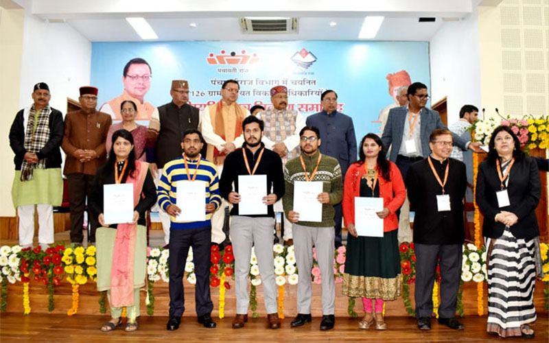 देहरादून। उत्तराखण्ड अधीनस्थ सेवा चयन आयोग के माध्यम से ग्राम पंचायत विकास अधिकारियों के 126 पदों पर चयन के उपरांत गुरुवार को मुख्य सेवक सदन, मुख्यमंत्री आवास में प्रदेश के मुख्यमंत्री पुष्कर सिंह धामी ने एक समारोह के दौरान उन्हें नियुक्ति सौंपे।